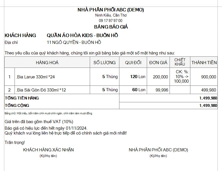 Chức năng giúp bạn tạo bản báo giá chuyên nghiệp từ danh mục hàng hóa, giá bán sẵn có một cách nhanh chóng. Chức năng giúp bạn chuyển nội dung đã báo giá cho khách hàng thành phiếu bán hàng thật đơn giản.